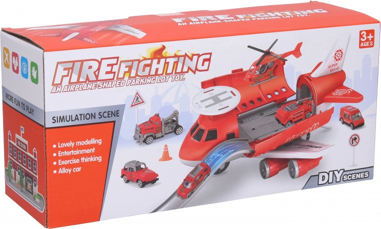 Die Feuerwehr-Flugzeugstation bietet großartigen Spaß für kleine Feuerwehrleute! Sie enthält eine Flugzeugstation, 4 kleine Autos und einen Hubschrauber mit freien Rädern.