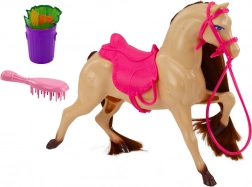 Pferd mit realistischen Details und beweglichen Elementen. Enthält rosa Sattel und Zügel für authentisches Spiel.