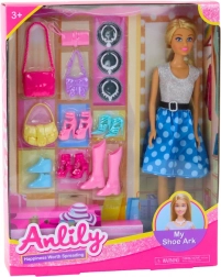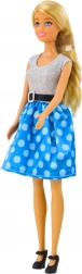 Puppe Anlily ist eine elegante Puppe, die mit ihrem Aussehen und ihren reichen Details begeistert. Sie ist mit einem stylischen silbernen Top, einem blauen Rock mit weißen Punkten sowie einem schwarzen Gürtel und Schuhen ausgestattet. Diese Kombination ermöglicht es Kindern, zu experimentieren und einzigartige Modestile zu schaffen.