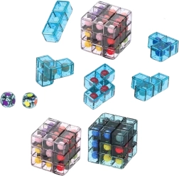 Der Logik-Würfel ist ein fortgeschrittenes Bauset bestehend aus verschiedenen Würfeln, die farbenfrohe Kugeln im Inneren verbergen. Seine einzigartigen Formen und Farben machen das Erstellen räumlicher Strukturen nicht nur zu einer intellektuellen, sondern auch zu einer künstlerischen Herausforderung.