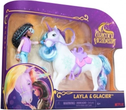 Tauchen Sie ein in die Welt der magischen Abenteuer mit der Einhorn Akademie und dem Set der Puppe Layla und des Einhorns Glacier! Die Puppe Layla ist 11 cm groß und mit realistischen Details ausgestattet, mit 7 Biegepunkten für dynamische Posen. Das Einhorn Glacier, 5 Zoll hoch, ergänzt Layla wunderschön mit seinem eisigen Aussehen und der blau-weiß-rosafarbenen Mähne und Schwanz, die gekämmt werden können.