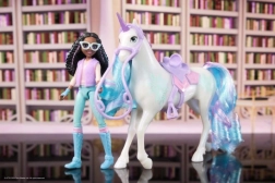 Die Puppe Layla hat 7 Biegepunkte für vielseitige Posen und das Einhorn Glacier besticht durch seine wunderschöne kämmbaren Mähne.