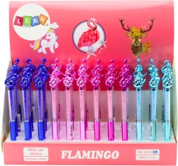 Entdecken Sie den eleganten Kugelschreiber mit dekorativem Flamingo, der praktisches Schreiben mit originellem Design verbindet. Die transparente Hülle, gefüllt mit kleinen „Diamanten“, glitzert bei Bewegung und verleiht Ihrer Ausstattung einen einzigartigen Look. Dank der blauen 0,7-mm-Mine eignet sich der Stift hervorragend für tägliche Notizen, Unterschriften und Schulaufschriebe.