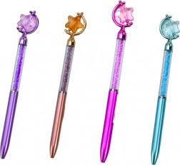 Ein bezaubernder Kugelschreiber mit transparentem Schaft voller feiner Glitzerpartikel und Steinchen, der sofort ins Auge fällt. Das dekorative Sternchen am oberen Ende sorgt für einen verspielten Look, während die blaue Tinte und die 0,7‑mm-Spitze für ein flüssiges, sauberes Schriftbild im Alltag sorgen.
