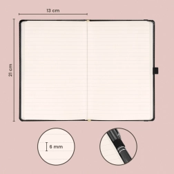 Insgesamt 172 Seiten auf gelbem Papier sind ideal für tägliches Schreiben, Planen und kreative Ideen. Dank des Formats 13 × 21 cm passt es bequem in Handtasche oder Rucksack und ist damit ein großartiger Begleiter für Arbeit, Schule und Reisen.