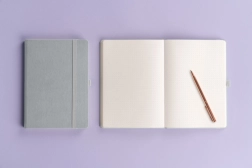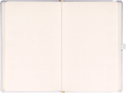 Das elegante gepunktete Notizbuch Notique Balacron in Silber bietet eine robuste Oberfläche, ein ansprechendes Design und das Format 15 × 21 cm – ideal für tägliche Notizen, Planung und Skizzen.
