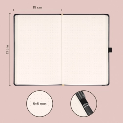 Das Punkt-Raster bietet Flexibilität zum Schreiben, Zeichnen und Erstellen übersichtlicher Layouts. Die Oberfläche eignet sich zudem für die Logoprägung, sodass Sie das Notizbuch leicht in ein stilvolles Firmengeschenk oder Präsentationsmaterial verwandeln können.