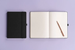 Das elegante Notizbuch NOTIQUE Aprint ist eine hervorragende Wahl für tägliche Notizen, Planung und kreative Ideen. Die schwarze Ausführung und die dezente Struktur des Einbands verleihen einen professionellen Look, der sowohl ins Büro als auch zu Meetings passt.