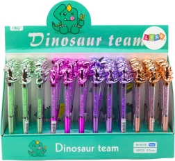 Kugelschreiber mit Dinosaurier, glitzernden Steinchen, blauer Tinte 0,7 mm, Farb-Mix