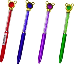 Kugelschreiber mit Mäuschen und glitzernden Steinchen, blaue Mine 0,7 mm