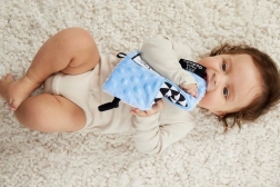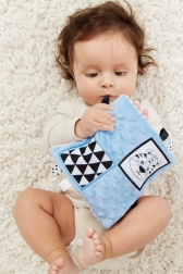 Die GaGaGu Sensorikdecke bietet eine hervorragende Gelegenheit zur Entwicklung der Sinne Ihres Kindes. Farbkontraste und verschiedene Muster ziehen die Augen an, während das knisternde Material im Inneren ein hörbares Erlebnis bietet. Das Kind kann verschiedene Texturen erkunden, die die Entwicklung des Tastsinns unterstützen.