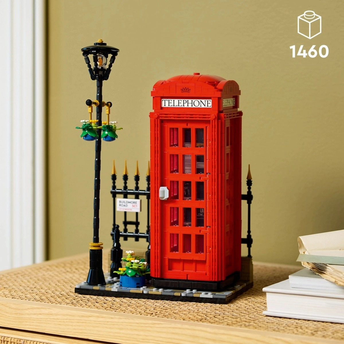 LEGO Ideas Rote Londoner Telefonzelle ist ein kreatives Bauset, das die klassische britische K2-Telefonzelle originalgetreu darstellt. Das Modell enthält einen LEGO Leuchtstein zur Innenbeleuchtung und schafft so eine authentische Atmosphäre. Mit der Option, zwischen einem Retro-Telefon oder dem Stil der 80er Jahre zu wählen, lässt sich das Innere nach persönlichen Vorlieben gestalten.