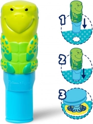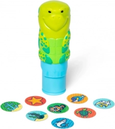 Das Set enthält alles, was für den sofortigen Beginn einer Unterwasserexpedition benötigt wird. Der Stempel mit der lächelnden Schildkröte und dreihundert Aufklebern stellen Meerespflanzen, Korallen und Unterwasserlandschaften lebhaft dar. Außerdem enthält es ein 24-seitiges Buch mit farbigen Hintergründen, die Ozeane, Korallenriffe, Strände und andere Wasserszenerien für die Gestaltung von Geschichten zeigen.