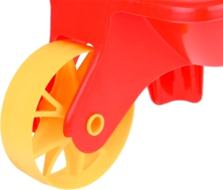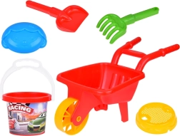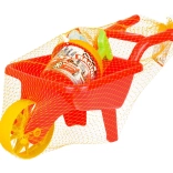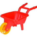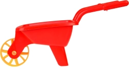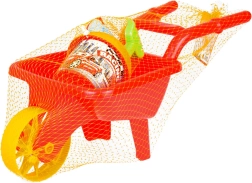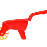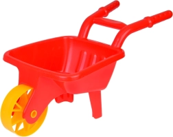 Die Kunststoffschubkarre mit einem breiten Rad und bequemen Griffen erleichtert das Transportieren von Sand, Erde oder Spielzeug. Kinder trainieren Gleichgewicht und Bewegungskoordination.