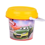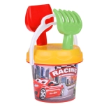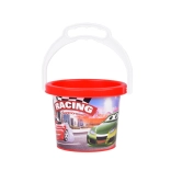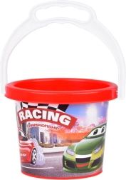 Der bunte Eimer mit Rennmotiv motiviert Kinder zum Spielen und lässt sich dank des robusten Henkels leicht tragen. Perfekt für Wasser und Sand.
