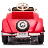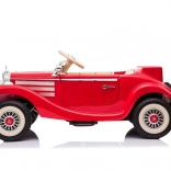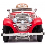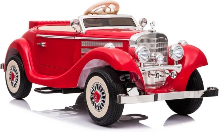 Der Retro-Roadster MERCEDES-BENZ 540K mit Akku begeistert kleine Fahrer mit eleganter Karosserie, Chromakzenten und einem Armaturenbrett in nussbaumähnlicher Optik. Der Innenraum wird durch eine komfortable Sitzbank aus hellem, weichem Ökoleder und ein ergonomisches Lenkrad ergänzt. Für Sicherheit sorgen ein Beckengurt und ein sanfter Start ohne Ruckeln.