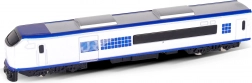 Weiße Ausführung mit blauen Details und klaren Linien betont den modernen Look der Lokomotive – ideal zum Spielen und Ausstellen.