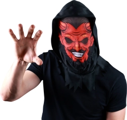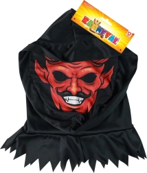 Textilmaske für den ganzen Kopf mit dem Motiv eines gruseligen Teufels ist ein Muss für jede Karnevalssammlung. Sie ist auch ideal für Halloween und Weihnachtsaufführungen.