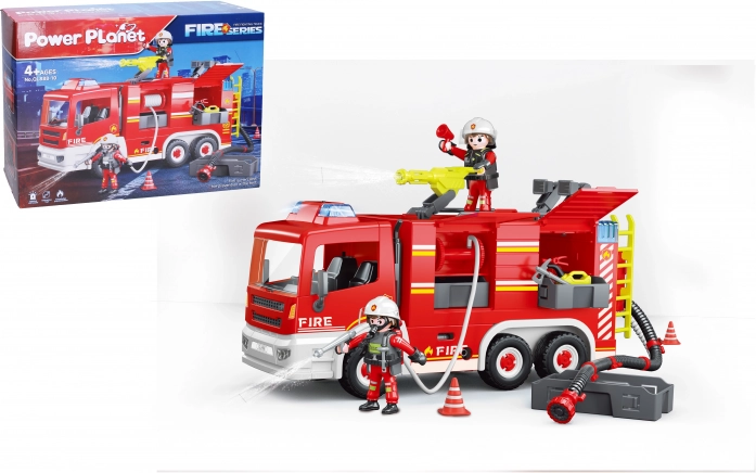 Bauen Sie Ihr eigenes Feuerwehrauto mit diesem Bausatz, der Licht- und Soundeffekte sowie aufklappbare Fächer bietet. Toller Spaß für Kinder!