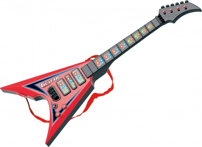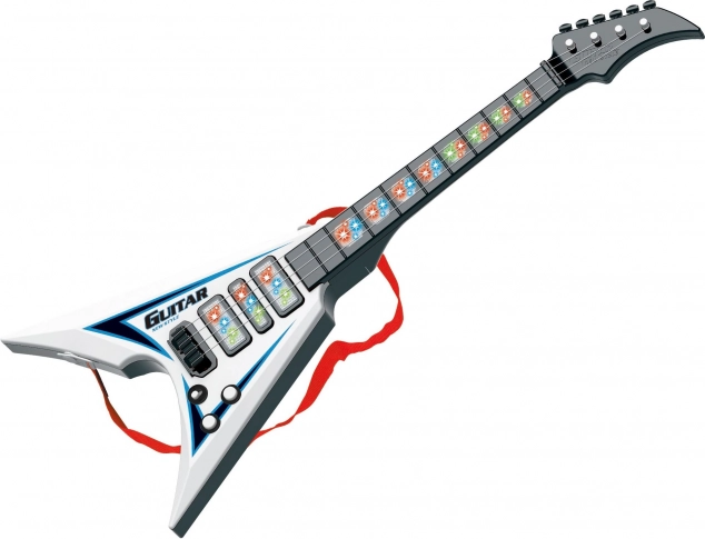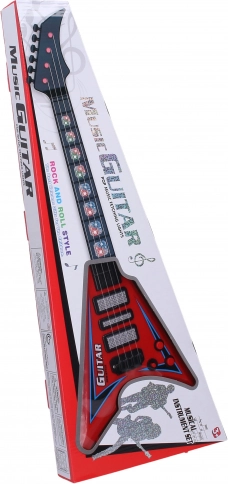 Diese elektrische Gitarre ist ideal für Anfänger und fortgeschrittene Musiker dank ihrer Abmessungen 22x5x56 cm. Sie hat Licht- und Klangeffekte, die ein einzigartiges Erlebnis beim Spielen bieten. Betrieben durch drei 3xAA-Batterien, die nicht im Lieferumfang enthalten sind, und einfacher Bedienung durch den ON/OFF-Schalter an den Potentiometern. Beide Potentiometer dienen zur Steuerung der Effekte.