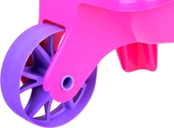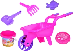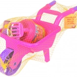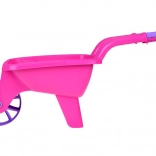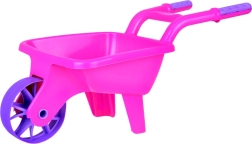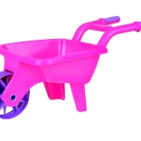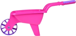 Die rosa Schubkarre mit violettem Rad ist für kleine Hände gemacht – leicht, stabil und ideal zum Transportieren von Sand, Spielzeug oder Laub.