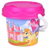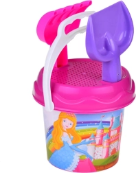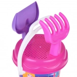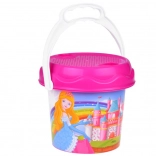 Der praktische Deckel mit Öffnungen ermöglicht das Sieben von Sand und das Bauen glatter Konstruktionen. Das farbenfrohe Design mit Prinzessinnenmotiv begeistert Kinder.