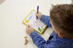 Füllen Sie den Stift mit Wasser, streichen Sie über die Seite und die Bilder erwachen in Farbe. Nach dem Trocknen (ca. 10 Minuten) verschwinden sie und Sie können von vorn beginnen.