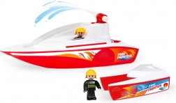 Zwei bewegliche Figuren besetzen Cockpit und Deck, damit Kinder leicht eigene Geschichten erschaffen können – vom Löschen von Bränden bis zu wagemutigen Rettungsoperationen. Das robuste Design und der schwimmende Aufbau sind ideal für drinnen und draußen.