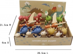 Entdecken Sie den Spaß mit dem drückbaren Dinosaurier aus Holz, erhältlich in 5 Farbvarianten – blau, grün, braun, orange und rot.