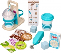 Das Kinderset für heiße und kalte Getränke ist ideal für kleine Baristas ab 3 Jahren. Kinder können so tun, als würden sie Kaffee, heiße Schokolade und erfrischende Milkshakes zubereiten – von der Auswahl der Zutaten über das Mischen bis zum Servieren.