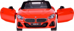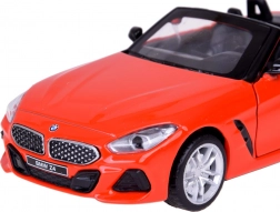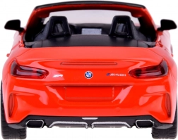 Dieses detailreich gestaltete Cabrio BMW Z4 M40i überzeugt durch hochwertige Ausführung für authentisches Aussehen und Spiel. Die Metallkarosserie, Gummireifen und das Kunststofffahrwerk sorgen für Stabilität und Langlebigkeit. Beim Öffnen der Türen werden Hupen- und Alarmtöne zusammen mit blinkenden Lichtern vorne und hinten aktiviert. Durch Andrücken des Modells auf die Unterlage starten Start- und Motorlaufgeräusche, zudem leuchtet das Armaturenbrett.