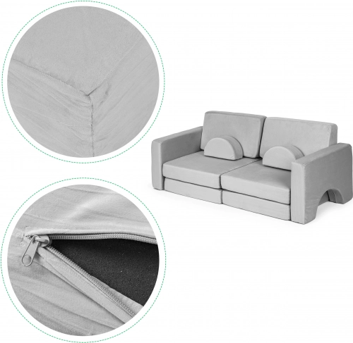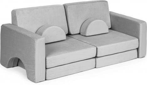 Großes zweisitziges modulares DIY-Kindersofa zum Falten mit 10 weichen Kissen – grau ECOTOYS