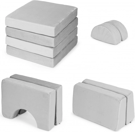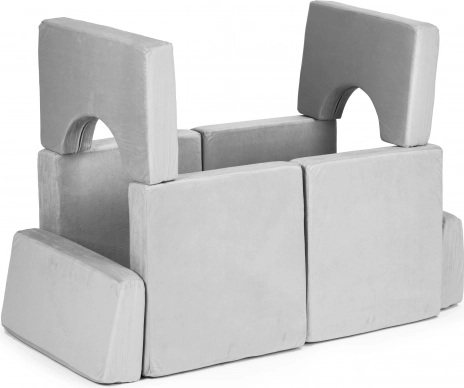 Die Baukasten‑Konstruktion und Kissen in verschiedenen Formen bieten Kindern unbegrenzte Möglichkeiten, unterschiedliche Bauwerke zu erschaffen, sodass Ihr Kind aus einem bequemen Sessel ein Haus, eine Burg oder ein Fahrzeug bauen kann. Diese Art des Spielens garantiert nicht nur großen Spaß, sondern fördert zugleich Fantasie und Feinmotorik.