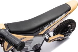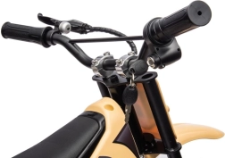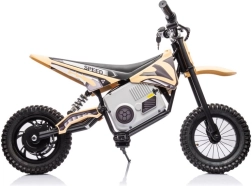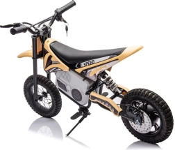 Das elektrische Kinder-Crossbike 36V in Khaki/Schwarz bietet ein realistisches Fahrerlebnis im Garten und auf leichtem Offroad. Die widerstandsfähige Konstruktion aus Metall und hochwertigem Kunststoff, breite Lenker mit sicherem Griff und ein ergonomischer Sitz sorgen für Stabilität und Komfort. Dank Elektroantrieb ist die Fahrt leise, sanft und emissionsfrei.