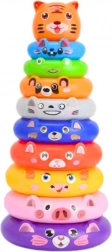 Auf der Spitze dieser Pyramide befindet sich ein niedlicher kleiner Tiger, der den Gesamtcharme verleiht und zum Spielen anregt. Das Spiel umfasst das Stapeln der Ringe von der größten zur kleinsten, was dazu beiträgt, logisches Denken und die Hand-Auge-Koordination zu entwickeln.