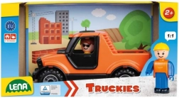 Suchen Sie ein widerstandsfähiges Auto für kleine Rennfahrer und Baumeister? Der LENA Truckies Pickup überzeugt durch seine stabile Konstruktion, die einfache Bedienbarkeit und die spaßigen Funktionen ganz ohne Batterien. Die öffnende Kabine mit aktiver Figur fördert die Fantasie und die Feinmotorik.