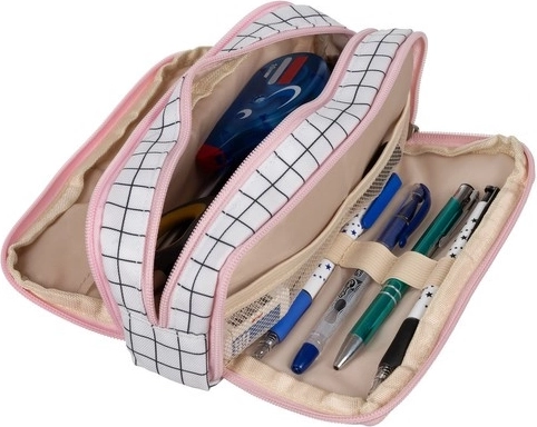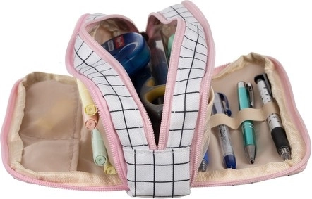 Das vielseitige Einsatzspektrum schätzen Schüler, Studierende und Profis gleichermaßen. Das Mäppchen eignet sich für Schule, Büro, Heimorganisation und Reisen – darin verstauen Sie auch Kosmetik, Kabel, Ladegeräte und weitere Kleinigkeiten. Das elegante Karomuster mit rosa Einfassung unterstreicht Ihren Stil.