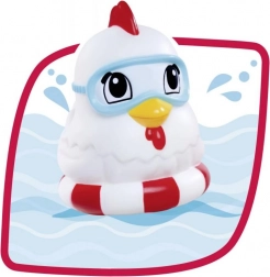 Die weichen Vinylfiguren liegen gut in der Hand und sind ideal für Wasser. Das Küken schwimmt im Schwimmring und lädt zu weiteren Spielen in der Wanne ein.
