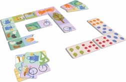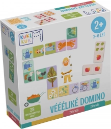 Entdecken Sie das unterhaltsame und lehrreiche Véééliké Domino Garten, das Feinmotorik, logisches Denken und Zählen bei Kindern ab 2 Jahren fördert. Das Set enthält 28 große, beidseitige Teile aus stabilem Karton – auf der einen Seite Bilder aus dem Garten, auf der anderen Obstpunkte für klassisches Domino.