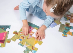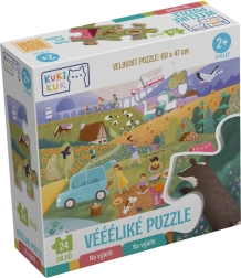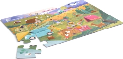 Dieses große Kinderpuzzle besteht aus 24 extra großen Teilen und ergibt zusammengesetzt ein Bild von 675 × 470 mm. Die Form der Verbindungen ist so gestaltet, dass sich nur die richtigen Bildteile verbinden lassen – das hilft Kindern, Zusammenhänge zu lernen und stärkt ihre Geduld. Die Teile sind aus hochwertigem, 2 mm starkem Karton gefertigt, der auch kräftigerem Umgang standhält.