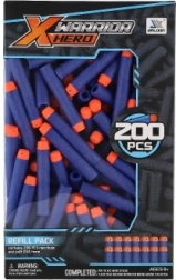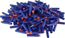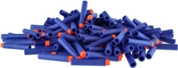 Die Standardform passt in die meisten Blaster (z. B. NERF, X-SHOT). Die blaue Farbe und die orangefarbenen Spitzen erleichtern das Auffinden der Pfeile nach dem Spiel.