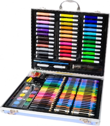 Das Set enthält bis zu 150 Teile, die die Bedürfnisse jedes kleinen Künstlers erfüllen. Darin befinden sich bunte Buntstifte zum Zeichnen und Skizzieren, Pastelle, ideal für weiche, zarte Farbverläufe, sowie Farben in verschiedenen Nuancen für ausdrucksstarke Gemälde. Ebenfalls enthalten sind Pinsel, damit das Kind mit verschiedenen Maltechniken experimentieren kann, sowie Bleistifte, die ein unverzichtbares Werkzeug für jeden Künstler sind.
