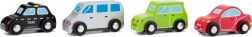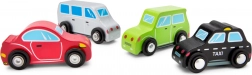 Dieses Set aus vier bunten Holzautos ist ideal für Kinder ab 18 Monaten, perfekt für die Entwicklung der Feinmotorik und fördert kreatives Spielen.
