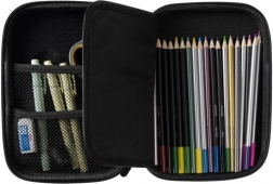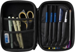Im Inneren finden Sie eine Innenklappe mit 6 Schlaufen für Bleistifte, Stifte oder Marker, 2 Netzfächer für Kleinteile sowie das Hauptfach, das ein Set an Kreativmaterial oder ein Tablet bis 8,5″ aufnimmt. Die Klappe schützt zugleich das Display vor Kratzern. Das Etui eignet sich hervorragend für die Schule, auf Reisen und als praktischer Organizer fürs Homeoffice.
