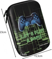 Stilvolles Schul-Etui mit 3D-Gamepad-Motiv bietet eine robuste Ausführung aus EVA, einen Doppelreißverschluss für bequemes Öffnen und eine durchdachte Organisation im Inneren. Es gibt hier 2 Netzfächer, 6 Schlaufen für Schreibutensilien und ein geräumiges Fach, in das sogar ein Tablet bis 8,5″ passt. Das Gamer-Design mit dem Schriftzug „LET’S PLAY A GAME“ erfreut alle Spielefans. (Schreibwaren sind nicht im Lieferumfang enthalten.)
