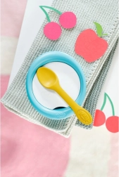 Das Set enthält eine Schüssel, einen Löffel und 5 Kärtchen mit verschiedenen Speisen, die Rollenspiel, Feinmotorik und Fantasie fördern. Alles ist leicht, sicher und einfach zu reinigen – ideal für das tägliche Spielen.