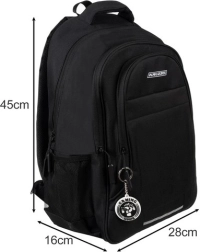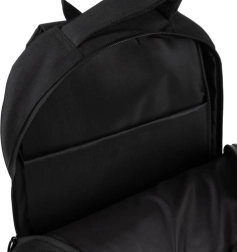 Praktischer schwarzer Rucksack mit einem Volumen von 22 l aus strapazierfähigem Oxford 600D-Gewebe bietet viel Platz und eine durchdachte Aufteilung. Er hat gepolsterte Schultergurte aus EPE-Schaum, einen atmungsaktiven Rücken, ein Hauptfach mit Reißverschluss und zwei Schiebern, ein gepolstertes Laptopfach, eine Fronttasche für Kleinigkeiten sowie seitliche Netztaschen für eine Flasche. Für mehr Sicherheit gibt es einen reflektierenden Streifen und einen bequemen oberen Tragegriff.