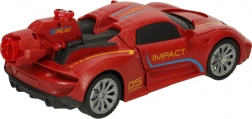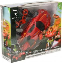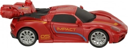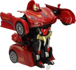 Mit nur einem Knopfdruck verwandelt sich das rote Auto in einen Roboter, der jeder Herausforderung gewachsen ist.