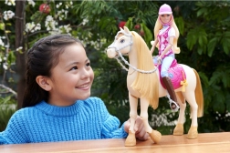 Für alle kleinen Fans von Pferden und Barbie ist diese Malibu-Puppe wie gemacht. Gekleidet in eine stylische Reitgarnitur inklusive rosa karierter Weste, blauer Hose und brauner Reitstiefel. Barbie ist bereit für galoppierende Abenteuer.
