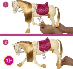 Die lange, goldene Mähne des Pferdes kann mit Clips für einzigartige Styles und verspielte Looks geschmückt werden.